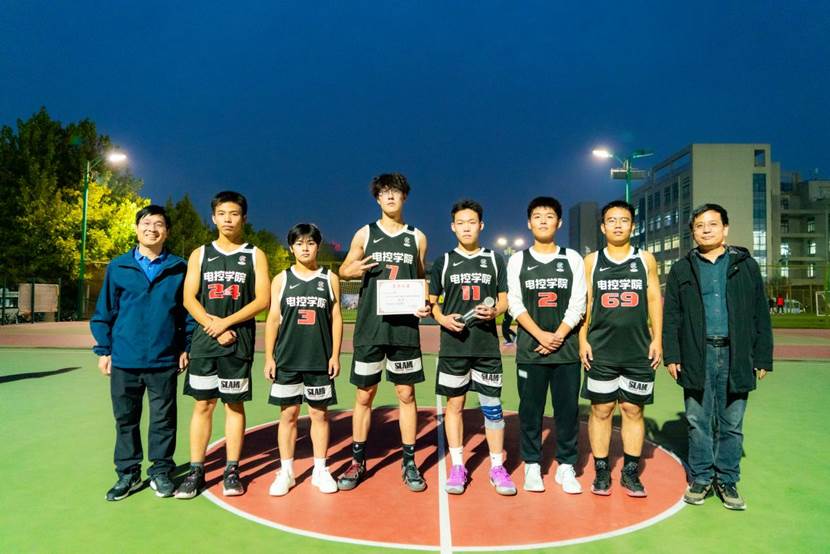 赛前热身时,队员们熟练地进行着投篮、传球等练习,眼神中充满了坚定。下午4:30,随着裁判的一声哨响,比赛正式开始。双方队员在球场上积极投入、全力以赴;挥洒汗水、点燃青春;火力全开、一往无前。每一次突破防线的果敢,每一次高高跃起的争抢,每一次精准无误的投篮,都是他们青春活力的喷薄。赛场上的声声呐喊与喝彩,热烈而澎湃,以热血励青春,他们向前奔跑,永不言弃!最终“电控篮网队”赢得比赛冠军。